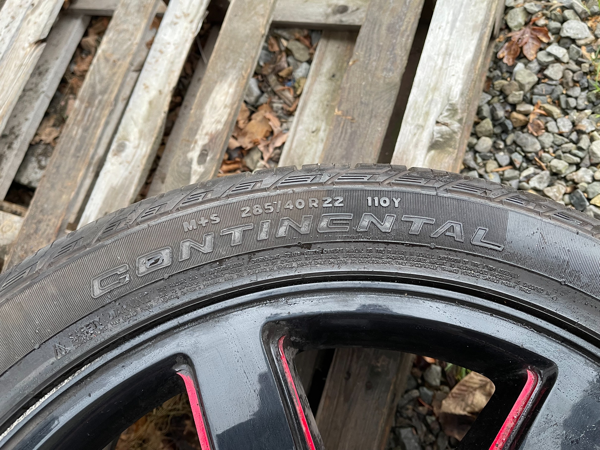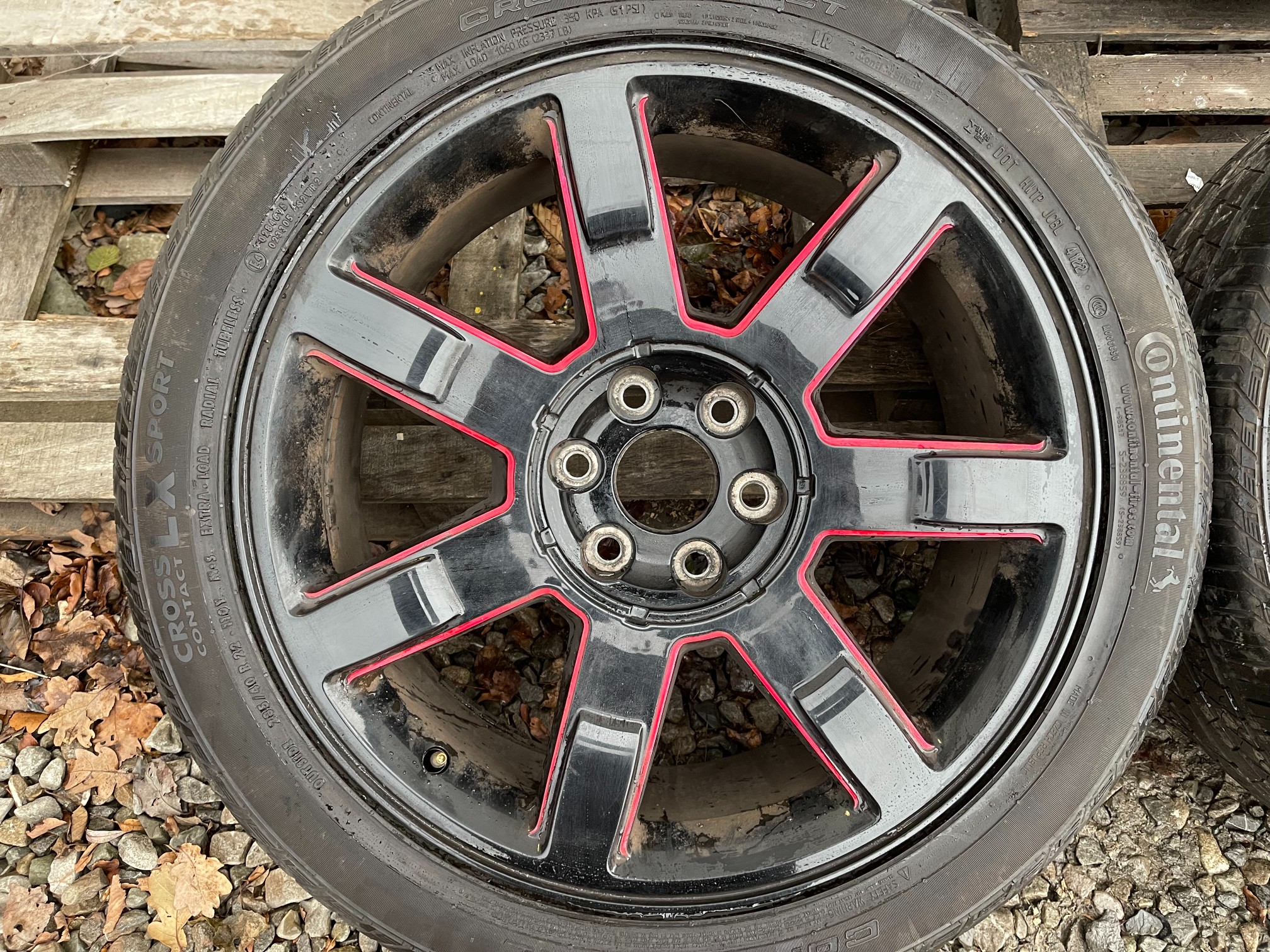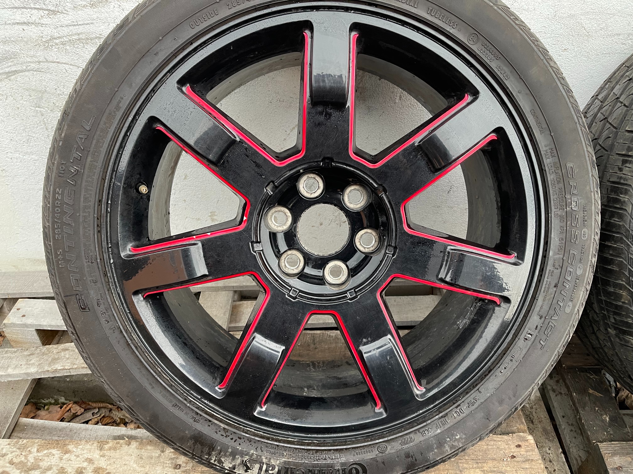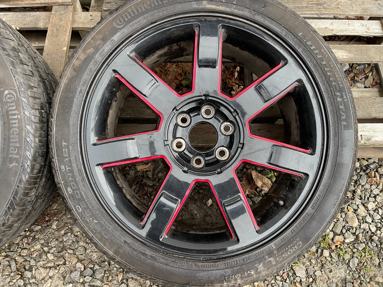 FELGI NIE ORYGINALNE + KOMPLET OPON CONTINENTAL CROSS CONTACT LX SPORT Z 2022 ROKU 285 40 22 9J 6X139.7 OKOŁO 5mm BIEŻNIKA
